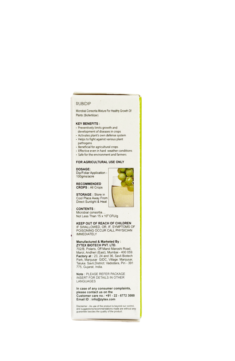 Rubidip is a premium concentrated microbial consortia formulation designed to promote vigorous plant growth and protect crops from a wide range of foliar and soil-borne fungal diseases. Its powerful blend of beneficial microbes activates the plant’s natural defense system, helping crops stay healthy even under challenging weather and disease-prone conditions. Rubidip ensures healthier crops and higher productivity. Safe for farmers, soil, and the environment, it is an ideal fit for sustainable and integrated crop management programs.